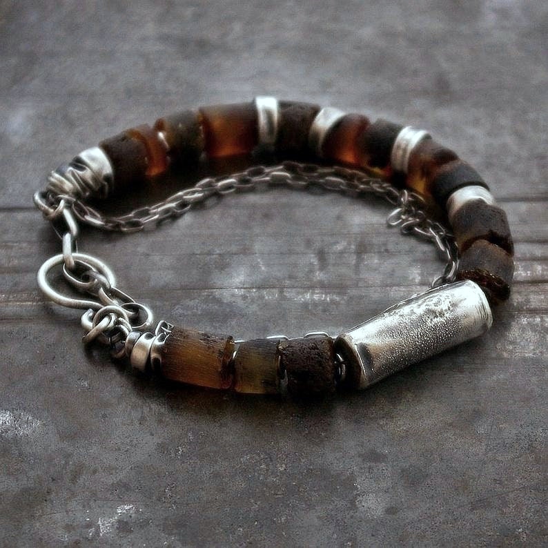 Baltic Amber bracelet handmade with oxidized sterling silver